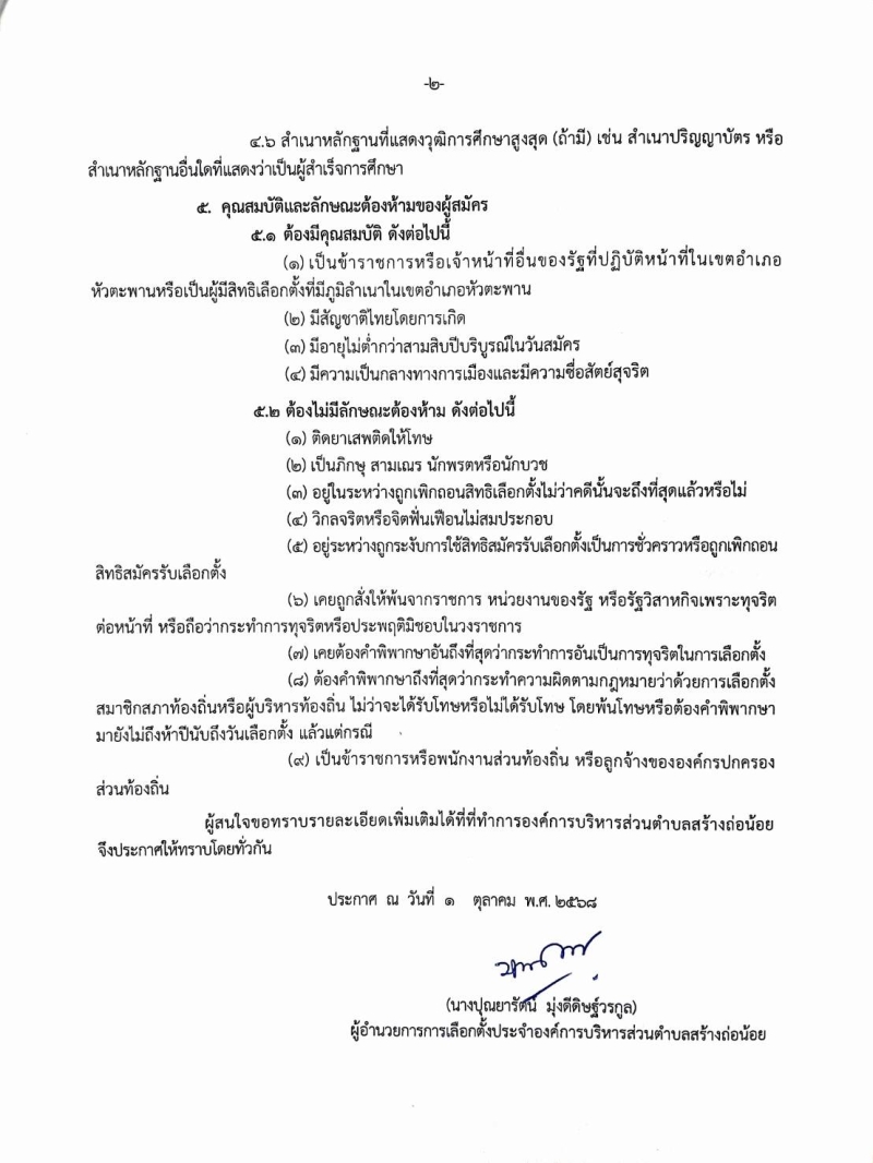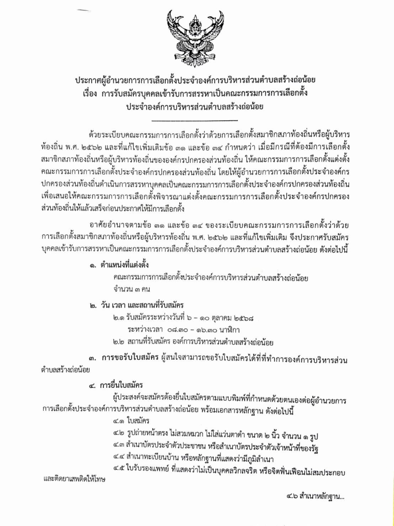 ประกาศรับสมัครบุคคลเข้ารับการสรรหาเป็นคณะกรรมการเลือกตั้งประจำองค์การบริหารส่วนตำบลสร้างถ่อน้อย