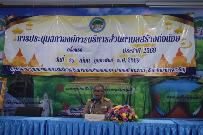 นายฤทธิไกร สายสุด นายอำเภอหัวตะพาน เป็นประธานเปิดการประชุมสภาองค์การบริหารส่วนตำบลสร้างถ่อน้อย "ครั้งแรก"ประจำปี 2569 โดยมีนายณฏฐกฤต กาษี ท้องถิ่นอำเภอหัวตะพาน พร้อมด้วยเจ้าหน้าที่ที่เกี่ยวข้องเข้าร่วมประชุม ณ ที่ทำการองค์การบริหารส่วนตำบลสร้างถ่อน้อย โดยนายอำเภอหัวตะพานได้กล่าวเปิดประชุมสภาองค์การบริหารส่วนตำบลสร้างถ่อน้อย "ครั้งแรก" เพื่อให้ที่ประชุมสภาฯได้ดำเนินการเลือกประธานสภาฯ รองประธานสภาฯ เลขานุการสภาองค์การบริหารส่วนตำบลสร้างถ่อน้อย และกำหนดวันเริ่มประชุมสมัยสามัญประจำปีแต่ละสมัย เพื่อให้กิจการสภาองค์การบริหารส่วนตำบลสร้างถ่อน้อยเป็นไปด้วยความเรียบร้อย