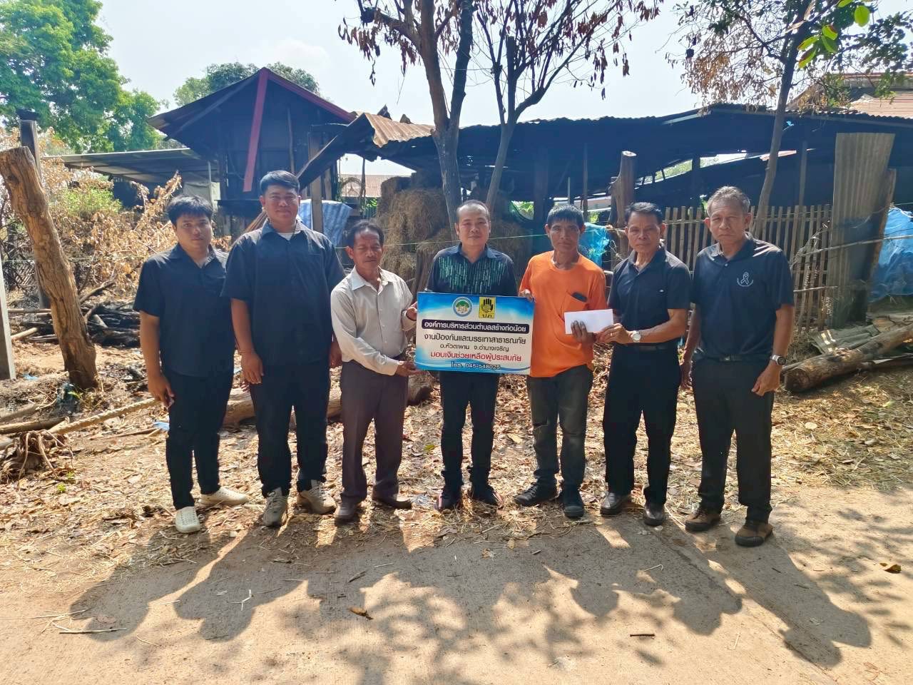 นายดาบชัย พิทักษ์เทพสมบัติ นายก อบต.สร้างถ่อน้อย พร้อมคณะผู้บริหาร ปลัดองค์การบริหารส่วนตำบล งานป้องกันฯ มอบเงินช่วยเหลือผู้ประสบภัยเหตุ (เหตุอัคคีภัย) จำนวน 1 ราย รายนายปรีชา ดอกบัว บ้านหนองไหล ม.6 ต.สร้างถ่อน้อย อ.หัวตะพาน จ.อำนาจเจริญ